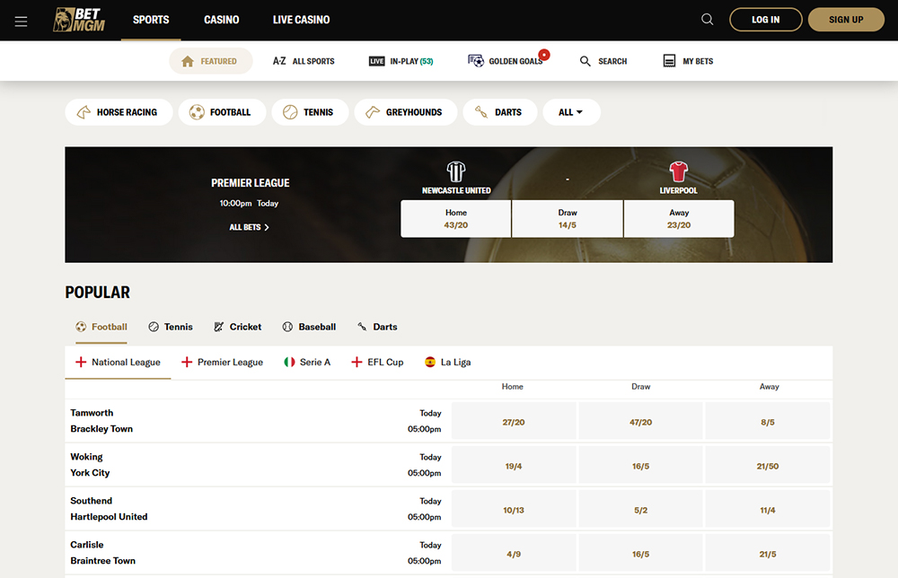 BetMGM is also partnered with a few Premier League clubs: Tottenham Hotspur, Newcastle United, and Wolverhampton Wanderers which make it an instantly recognisable brand to football fans.