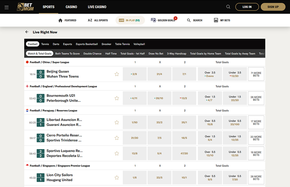 In our BetMGM Sports review, the simple layout guides newcomers from highlights to in-play to bet builders, while regulars can easily find their preferred betting markets and execute wagers quickly.