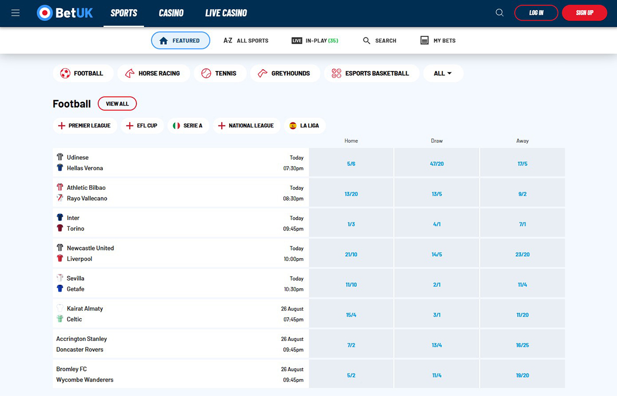 The BetUK sportsbook features a decent variety of sports from all over the world. You can bet on local football matches or track the latest events in the F1 Grand Prix. There are even some live eSports tournaments and unique games like Pesapallo. Finally, you can bet on seasonal events like the Olympics or novelty outrights.