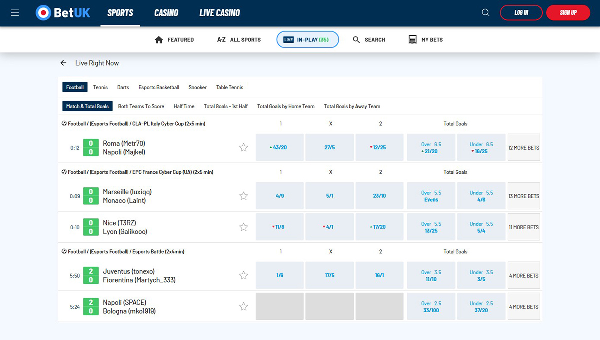 Betuk also has a variety of in-play markets. You can watch events via livestreams and even use a filter to find ones that have streams available. While you must log in to watch, eSports streams are available for everyone. Additionally, you can view graphics and updates on what happens in a match. Note that live odds shift frequently, so we recommend planning your bets carefully.